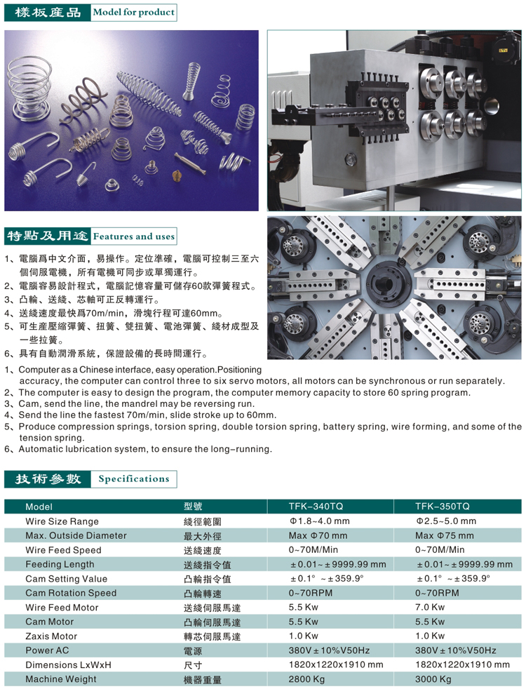 產品說明:東莞市西田彈簧機械公司是一家集彈簧機械設備研發、測試、制造于一體的民營科技企業,生產的彈簧機械類型有電腦彈簧機、數控彈簧機、萬能卷簧機等各類彈簧機械設備,成為廣東彈簧機械廠家新領軍企業!