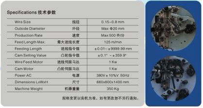 可生產發腳彈簧;配備有拉簧裝置,可生產邊鉤拉簧。